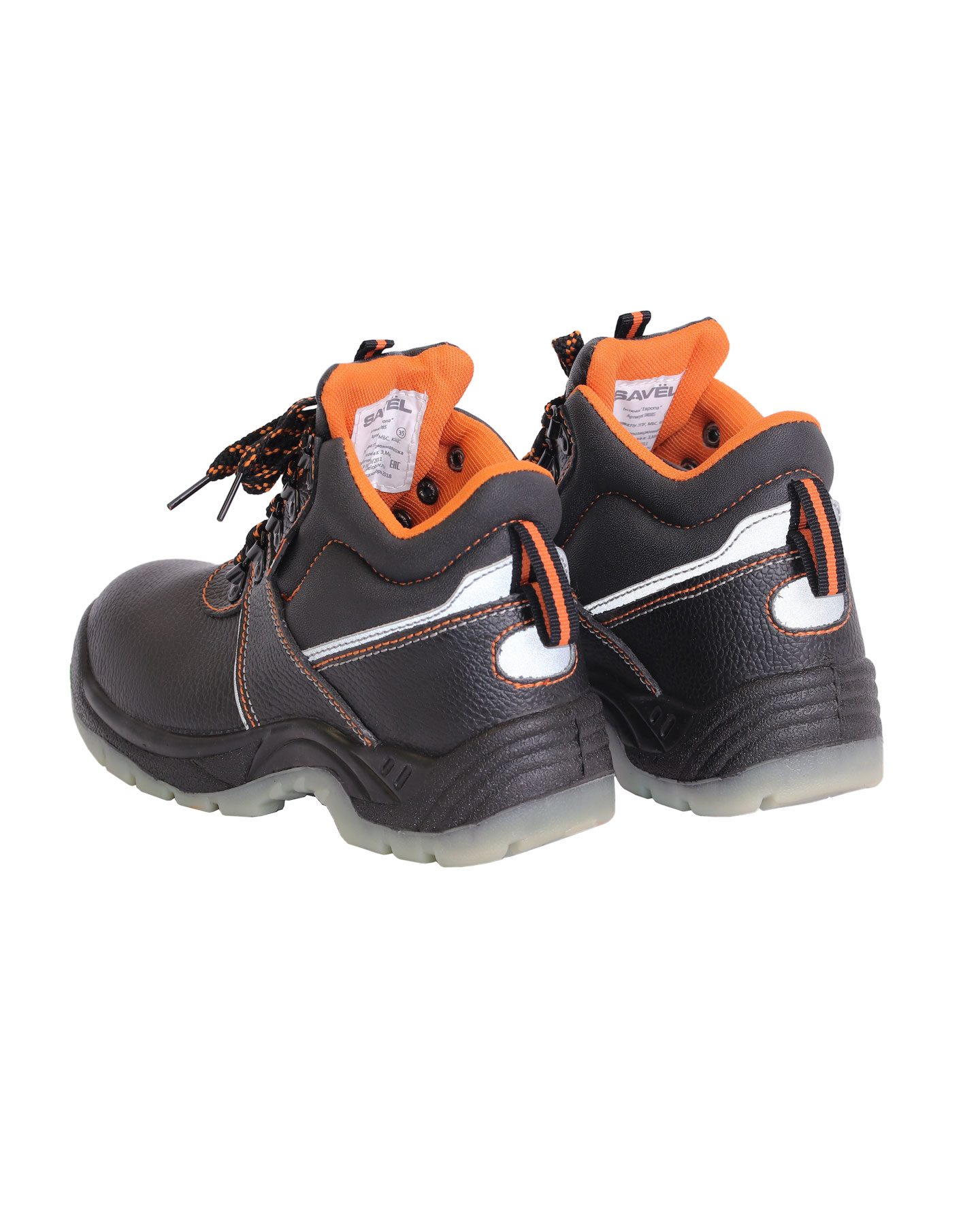 Верх ботинка имеет контрастные отделочно-скрепляющие строчки оранжевого цвета, как и подкладка, а также световозвращающие вставки для лучшей видимости в тёмное время суток.