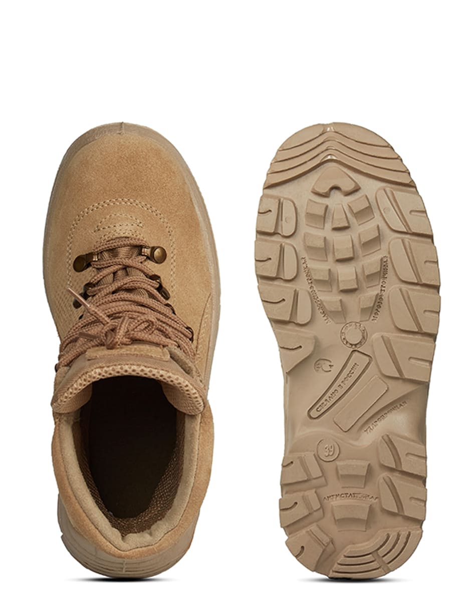 Ботинки с высокими берцами, облегченные. Данная модель создана для активного отдыха, силовых и охранных структур, любителей стиля милитари. Ботинки обладают характеристиками армейской обуви и удобством трекинговых кроссовок. Изготовлены из замши со вставками из особопрочной ткани типа кордура. Подкладка из современной многослойной синтетической влагопоглощающей ткани. Легкая, износоустойчивая подошва из вспененного полиуретана и вкладные стельки из "EVA" добавляют комфорта благодаря демпфирующим свойствам. Конструкция и материалы этой модели обеспечивают потребителю продолжительный срок комфортной эксплуатации. Данная модель адаптирована для применения в военно-патриотических организациях. Смотрите также статью про берцы