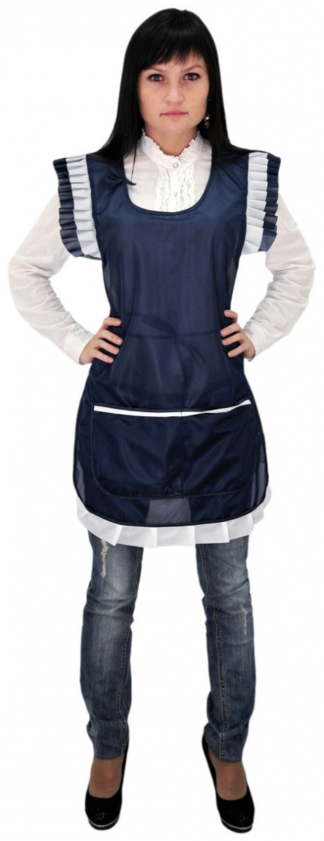 Фартук-сарафан с завязками по линии талии, с одним большим накладным карманом, разделенный строчкой на отделения. Рекомендуется для работников торговли, сферы обслуживания, технического персонала гостиниц.