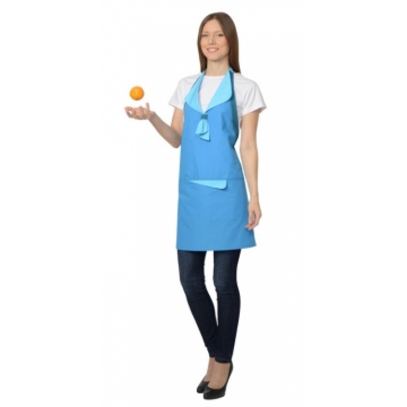 Описание: Фартук с V-образным вырезом горловины и прямой линией низа,с боковыми завязками для регулировки объёма и бретелями с застёжкой на 1 петлю и 2 пуговицы для регулировки по горловине.Фартук с треся карманами.По горловине оформлен лацканами.С отделочным элементом в виде галстука.