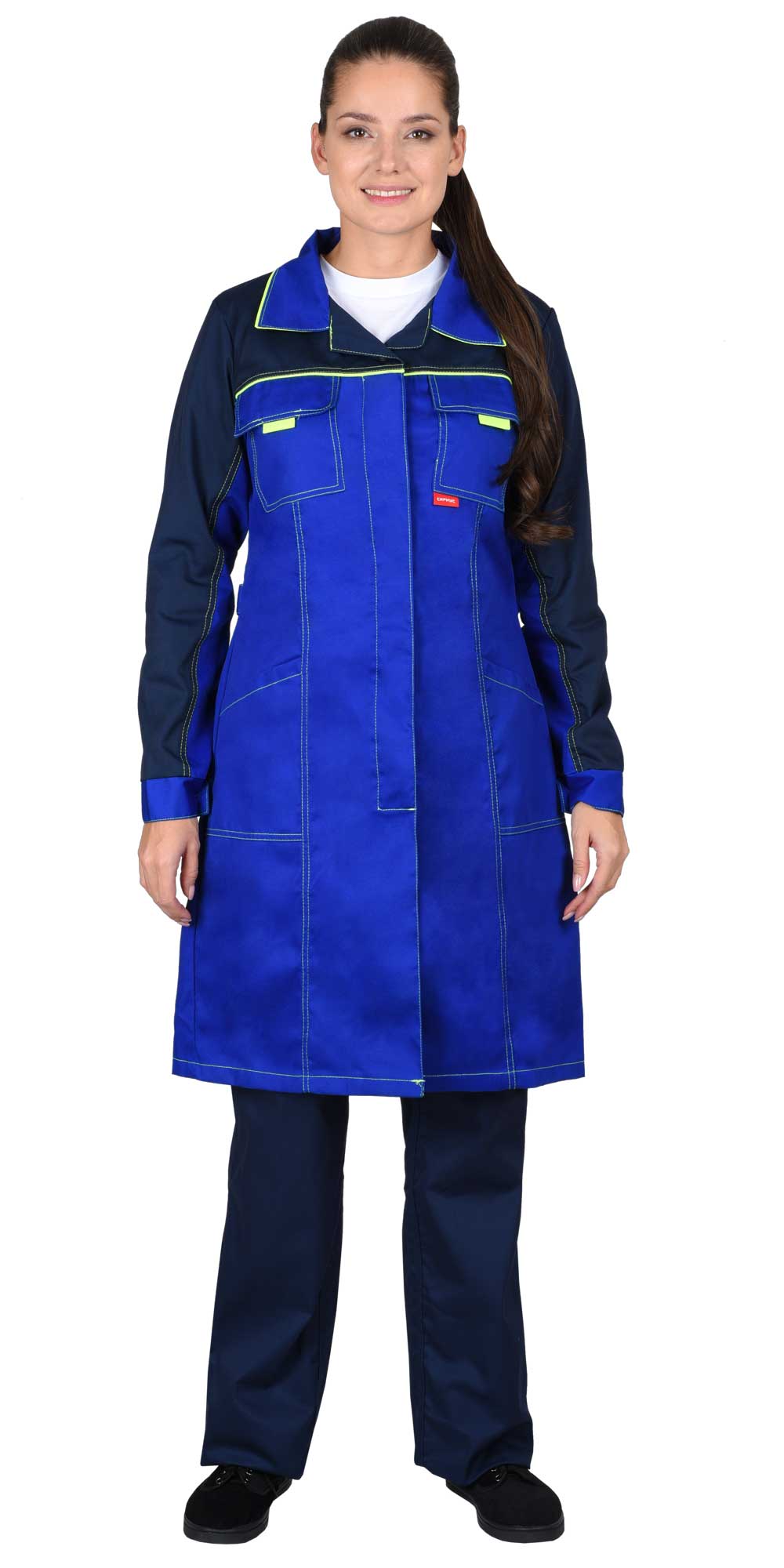 Халат "Ирина" женский васильковый с синим и лимонным кантом (ЧЗ) (104-108/170-176)