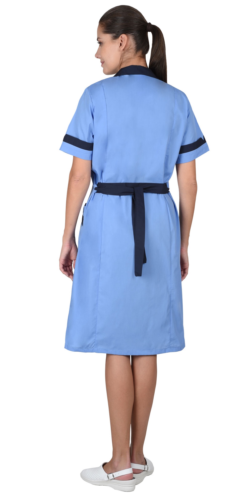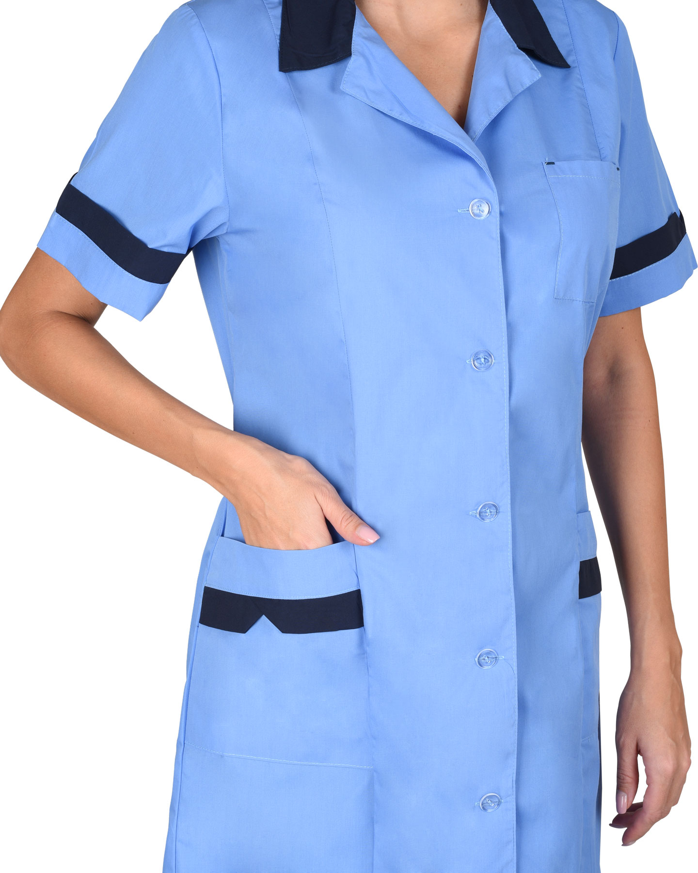 Халат "КЛАССИКА" женский, голубой с темно-синим (ЧЗ)