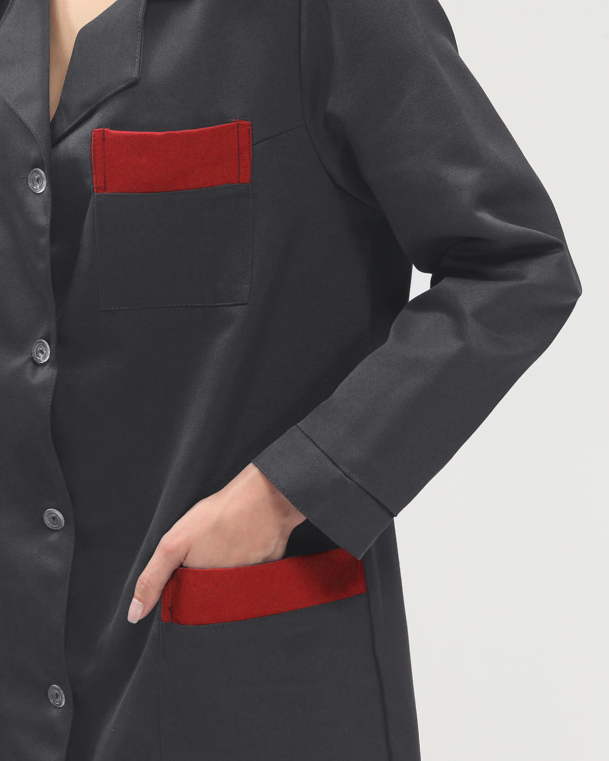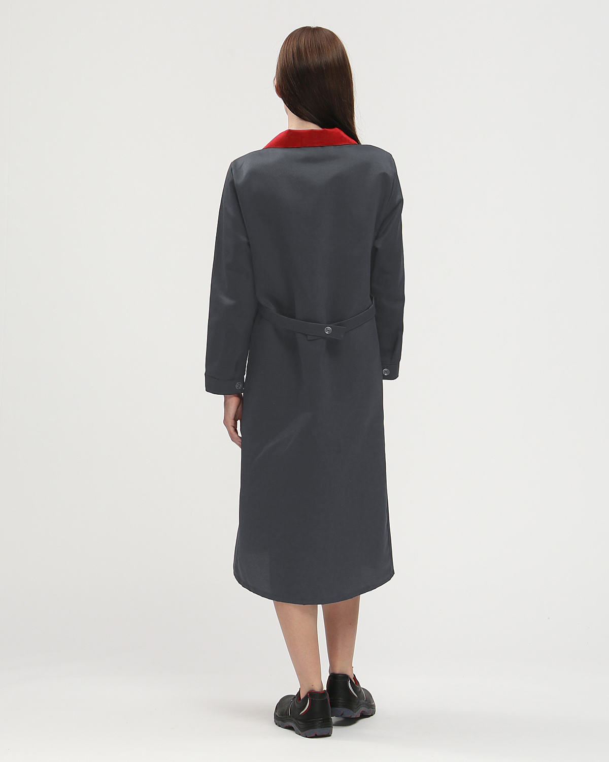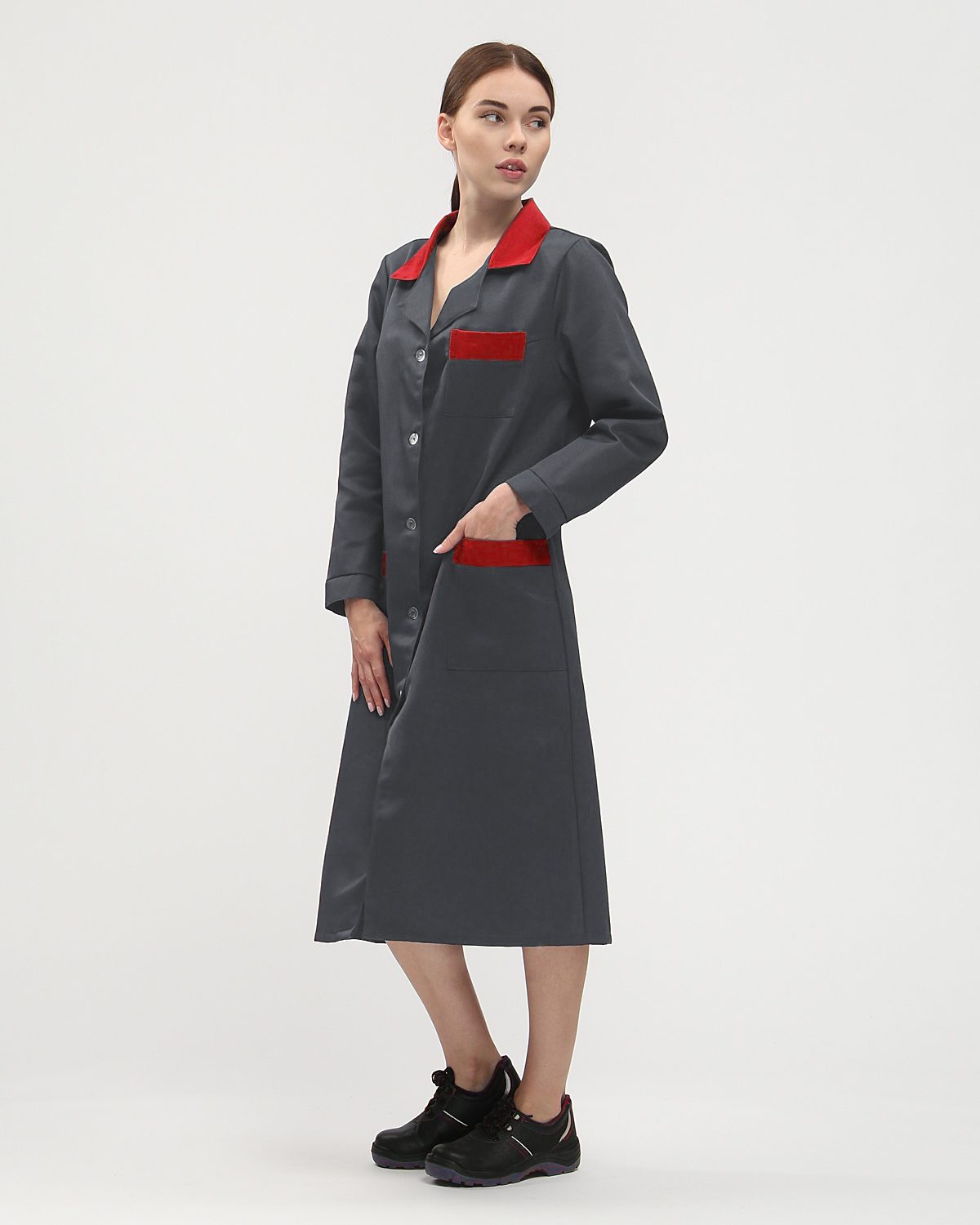 Халат женский Технолог (тк.Смесовая,210), т.серый/красный Факел (112-116/170-176)