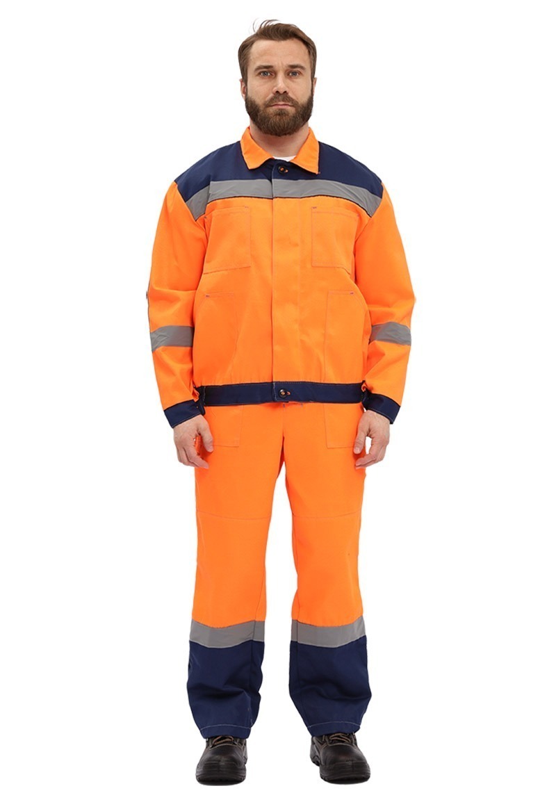 Костюм "ЛЕГИОН" куртка/полукомб. ОРАНЖЕВЫЙ/Т.СИНИЙ, КОС817-461