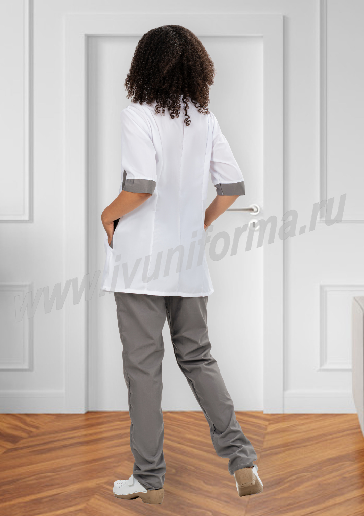 Костюм медицинский женский «Мелинда» белый с серым, куртка/брюки