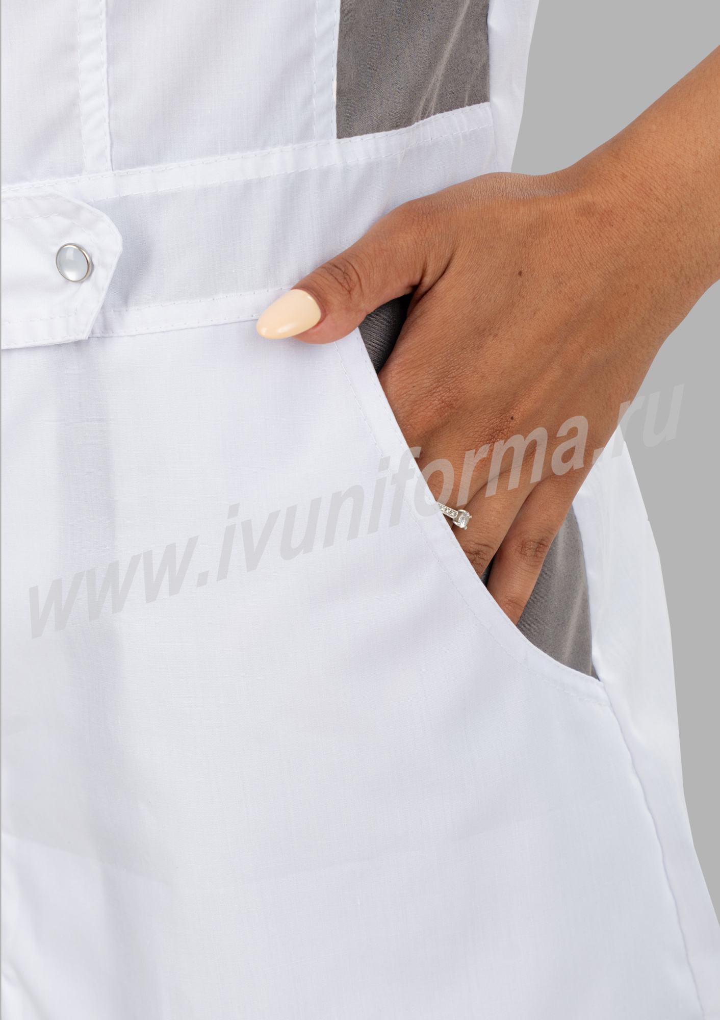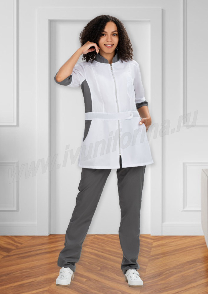 Костюм медицинский женский «Мелинда» белый с серым, куртка/брюки ( 88-92)