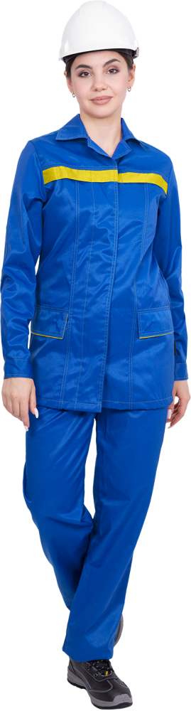 Костюм состоит из куртки и брюк.