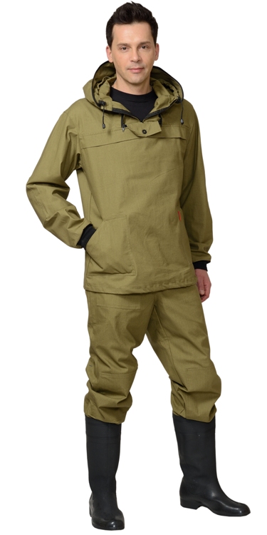 Брюки с цельнокроеным поясом, стянутым эластичной лентой, с 4-мя шлёвками, с наколенниками, с накладным карманом с клапаном, застёгивающимся на ленту "контакт", низ брюк с трикотажными манжетами. ТУ 17 РСФСР 510 9240-5584-90