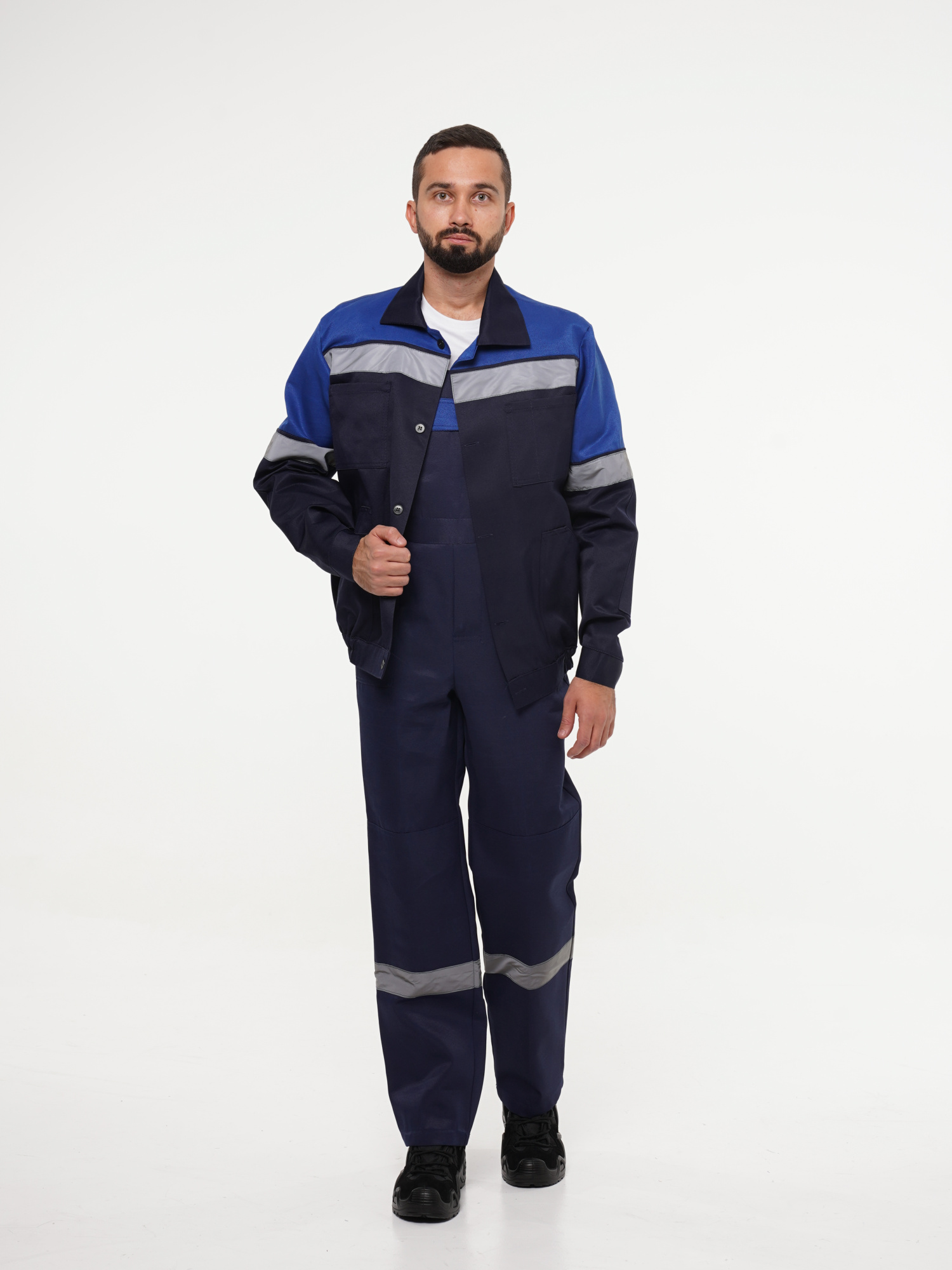 - куртка с полукомбинезоном - супатная застёжка на пуговицы - усиления в области локтей - СОП по кокеткам (спинки, полочки), рукава, полукомбинезон - гульфик на молнии
