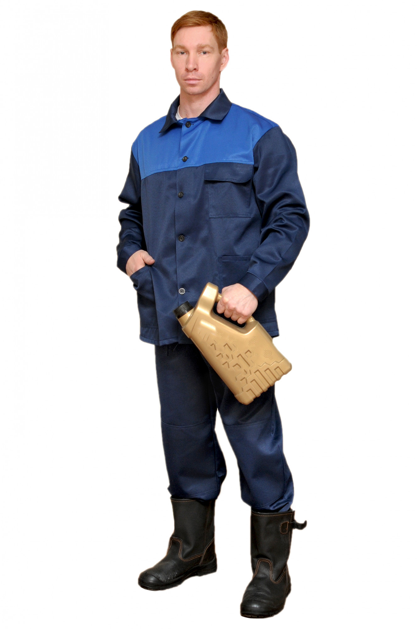 КОСТЮМ СТАНДАРТ 100%ХЛОПОК САРЖА (КУРТКА+ БРЮКИ) СИНИЙ+ВАСИЛЕК (Кронос) (ЧЗ) (120-124/182-188)