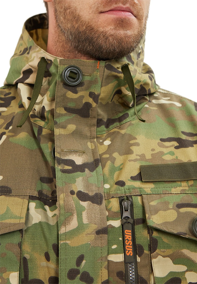 - Верхние и нижние накладные объёмные карманы с клапанами, застёгивающиеся на пуговицах канадках