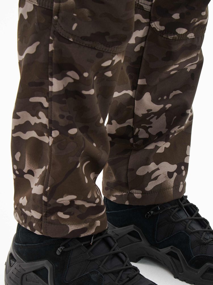 - на боковых сторонах брюк объемные карманы с двумя складками со входом на молнию и ограничителями с двух сторон, замок молнии закрывает декоративный клапан на липучке;
