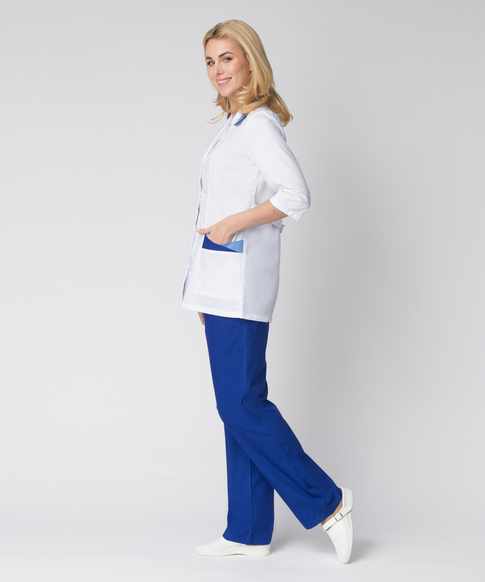 - контрастными голубыми и синими вставками отделаны карманы и воротник