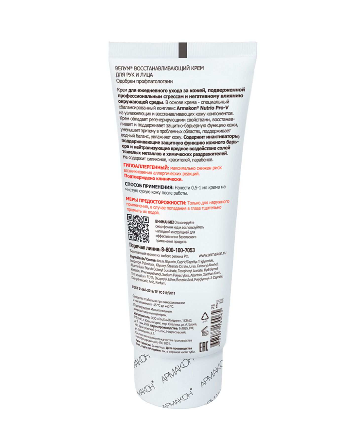 Благодаря наличию в составе специального питательного комплекса Armakon® Nutrio Pro-V, ВЕЛУМ® успокаивает и смягчает кожу, помогает в полной мере восстановить целостность кожного покрова после работы с агрессивными материалами и веществами и негативного влияния окружающей среды.