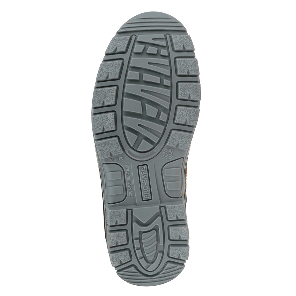 Двухслойная маслобензостойкая ПУ подошва литьевого метода крепления имеет вставку в пяточной части подошвы, обладающую амортизационными свойствами и способную гасить ударные нагрузки при ходьбе.