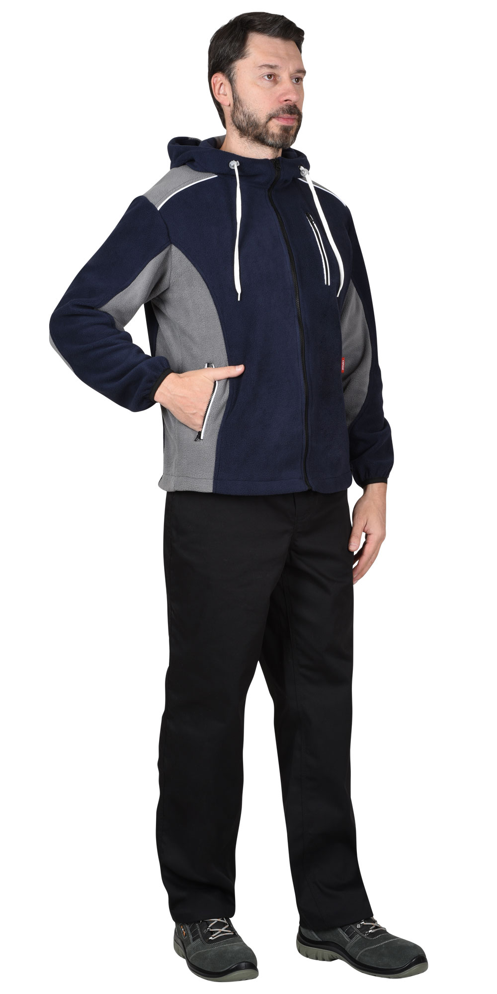 Куртка флисовая "Техно" т-синий с серым с капюшоном (ЧЗ)