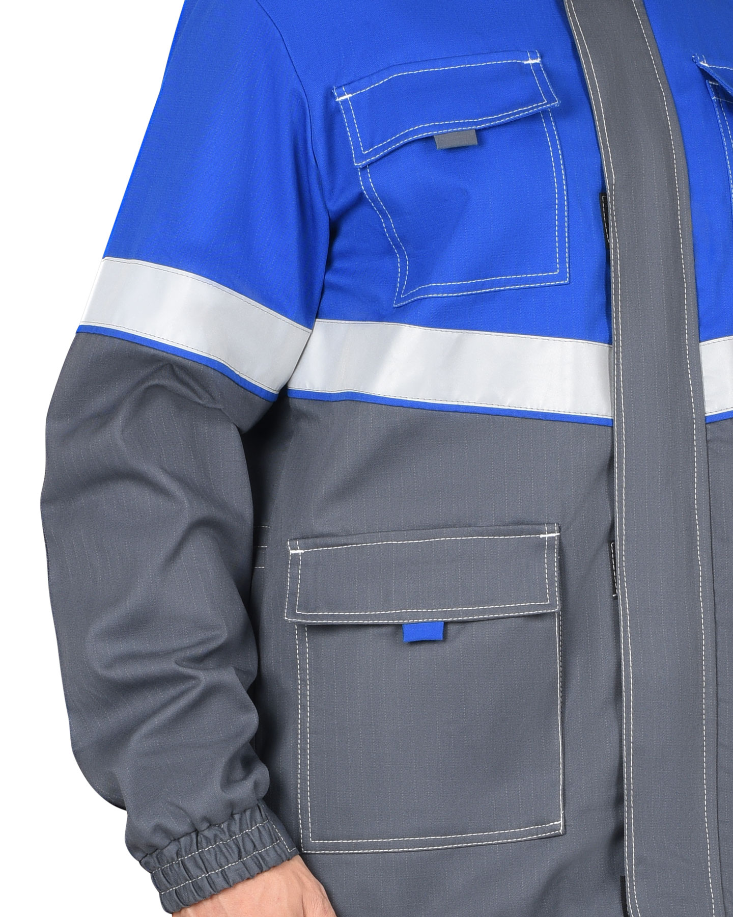 Куртка "Самотлор" длинная, серая с васильковым (ЧЗ)