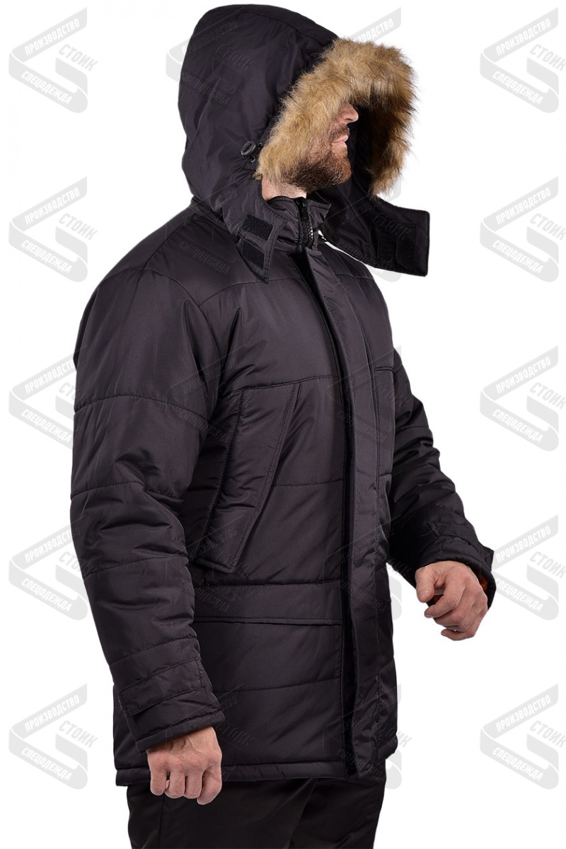 Капюшон съемный, с меховой опушкой, подкладка из флиса. Рукава втачные, с внутренней трикотажной манжетой, низ рукава регулируется патой.