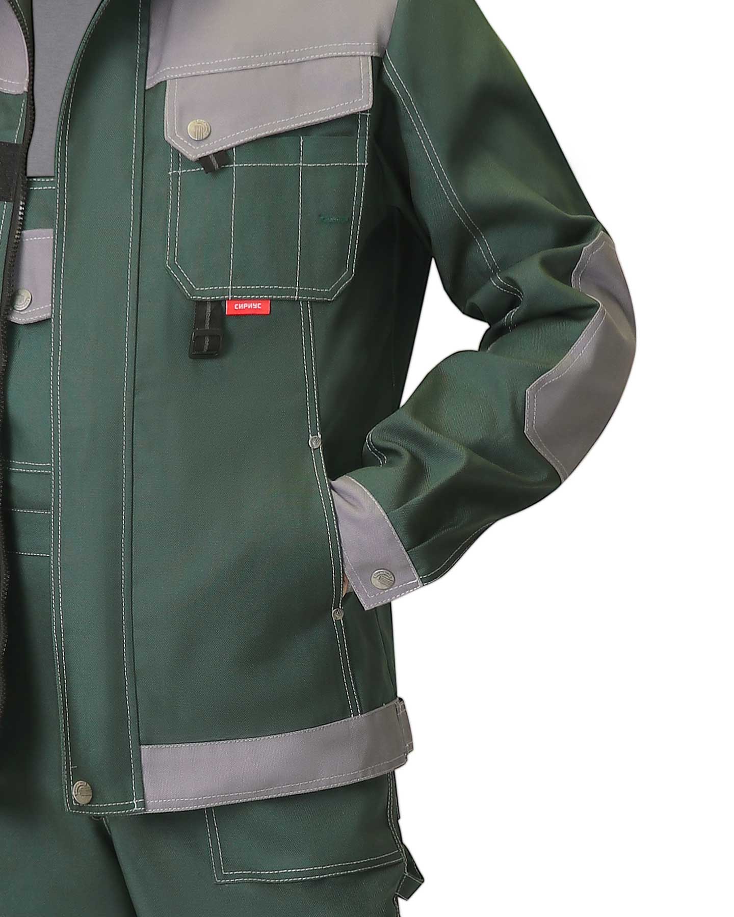 Куртка "ВЕСТ-ВОРК" короткая зеленая со ср.серым (ЧЗ) ( 88-92/170-176)