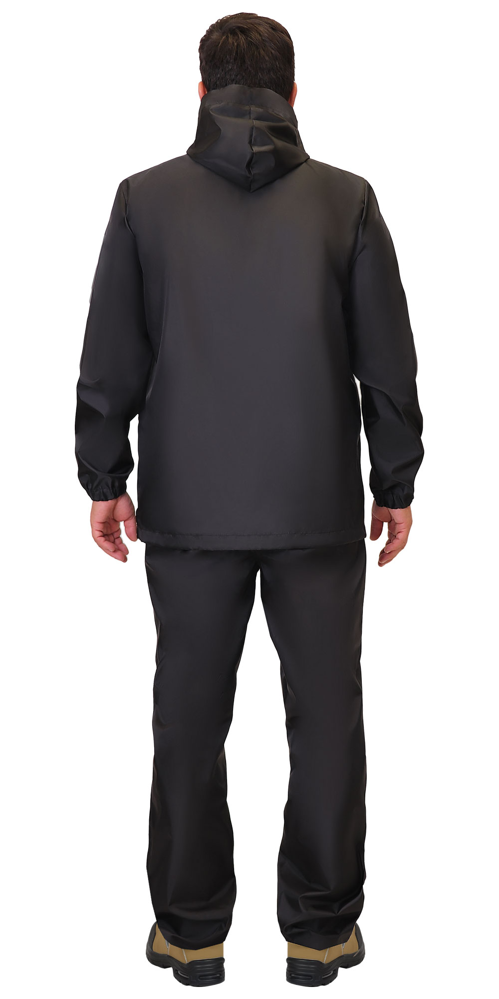Куртка из полиэфирной водоотталкивающей ткани, с застёжкой на молнию, с капюшоном, с большими накладными карманами с наклонным входом, низ рукавов собран на резинку, объём куртки понизу и объём капюшона по лицевому вырезу регулируются эластичным шнуром с фиксаторами.
