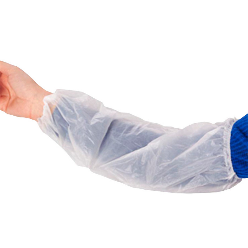 Нарукавники одноразовые изготовленные из прочного полиэтилена. Нарукавник хорошо фиксируется на руке при помощи резинки. Полиэтиленовые нарукавники используются в качестве защитного средства от каких-либо загрязнений. Применяются в различных сферах: медицине, пищевых производствах, химических лабораториях, косметических салонах. Вес за пару: 3 гр