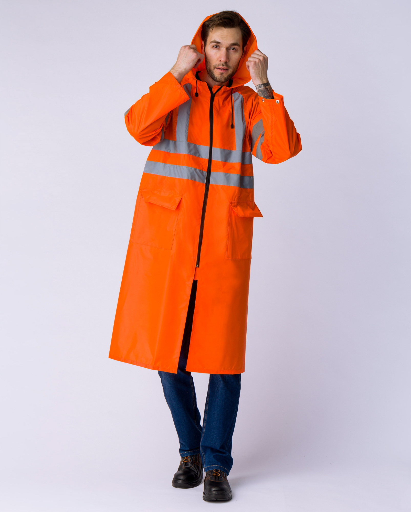 Плащ изготовлен из прочной плащевой ткани с ПВХ покрытием.