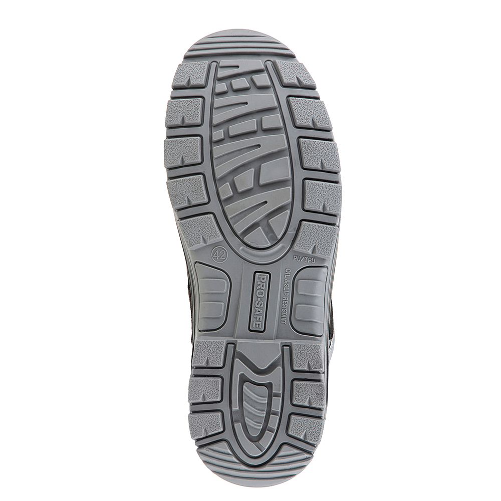 Полуботинки изготовлены с помощью литьевого способа крепления подошвы. Верх ботинок выполнен из натуральной кожи, толщиной 1,6-1,8 мм, со световозвращающими элементами для лучшей видимости работника в условиях недостаточной освещенности. В верхней части имеется мягкий кант. Полуботинки фиксируются на ноге с помощью шнуровки, проходящей чекрез текстильные петли и металлическую блочку в верхнем ряду. Подкладка выполнена из текстильного сетчатого материала. Стелька вкладная. В носочной части внутренний защитный композитный подносок ударной прочностью 200 Дж. Также на данной модели в передней и боковых частях имеются вентиляционные отверстия. Глубина профиля ходового слоя составляет 3 мм. Цвет полуботинок - черный, с контрастной синей отстрочкой.