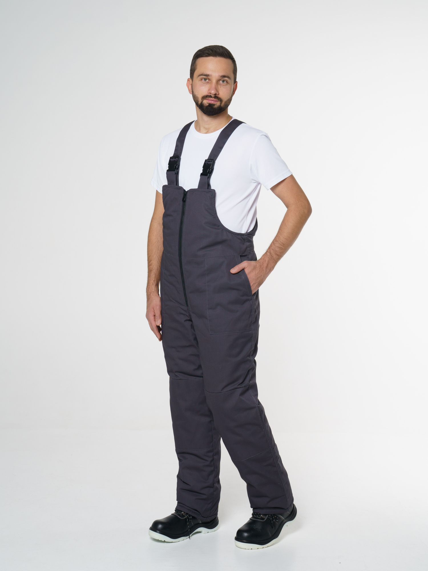 Полукомбинезон утепл."БУРАН"(тк.ТВИЛ+синтепон) темно-СЕРЫЙ Пк703 (ЧЗ) (104-108/170-176)