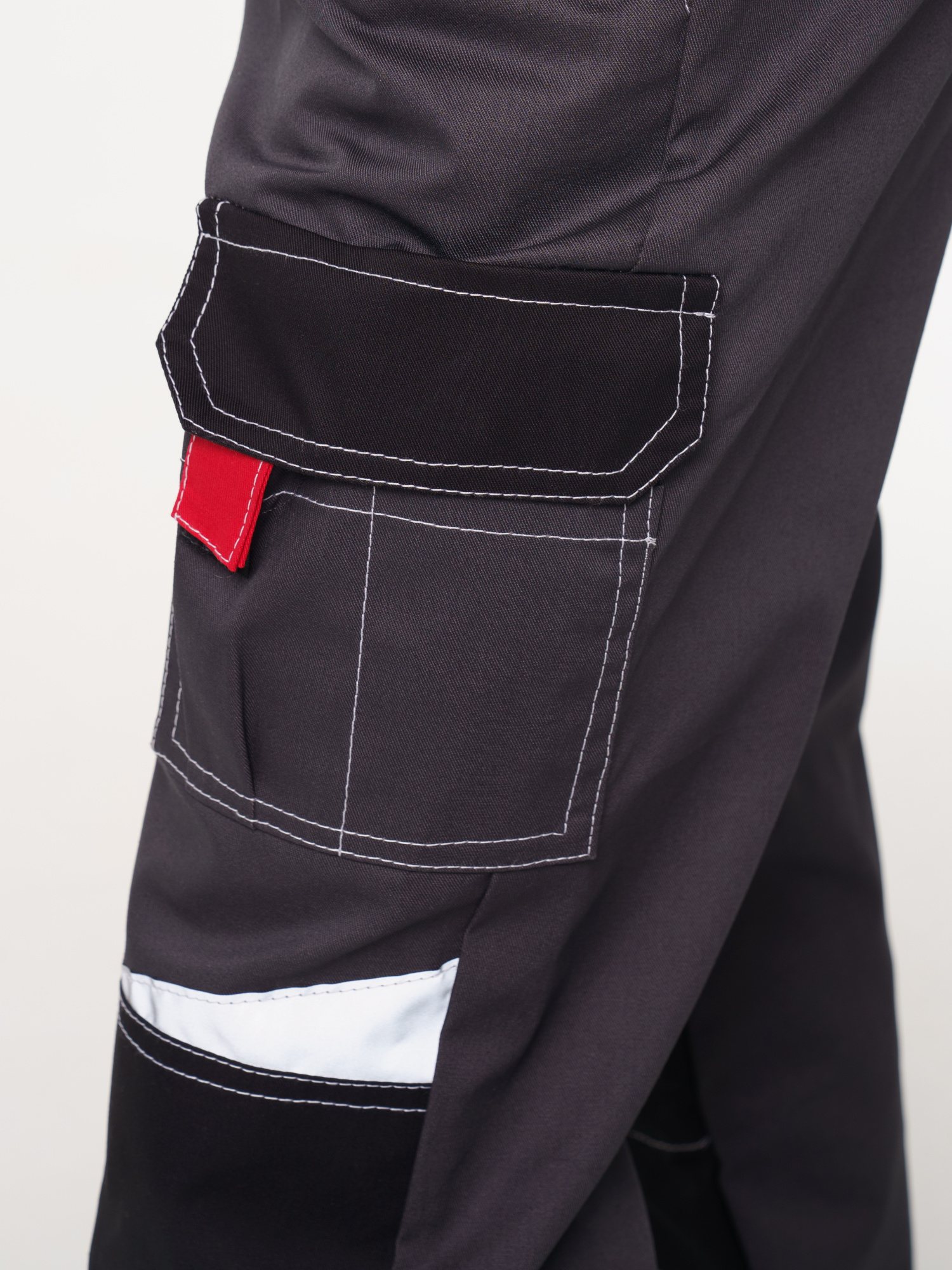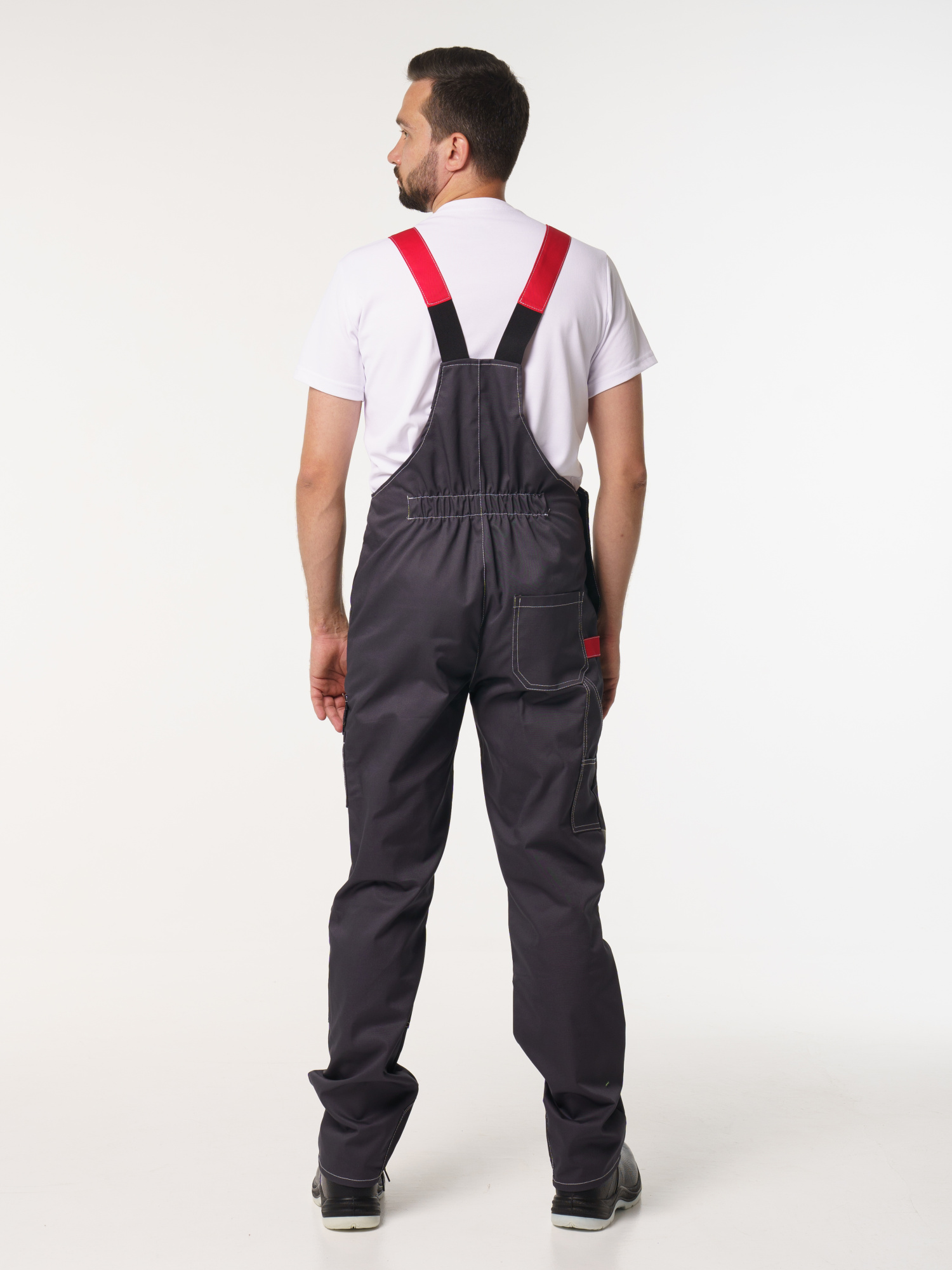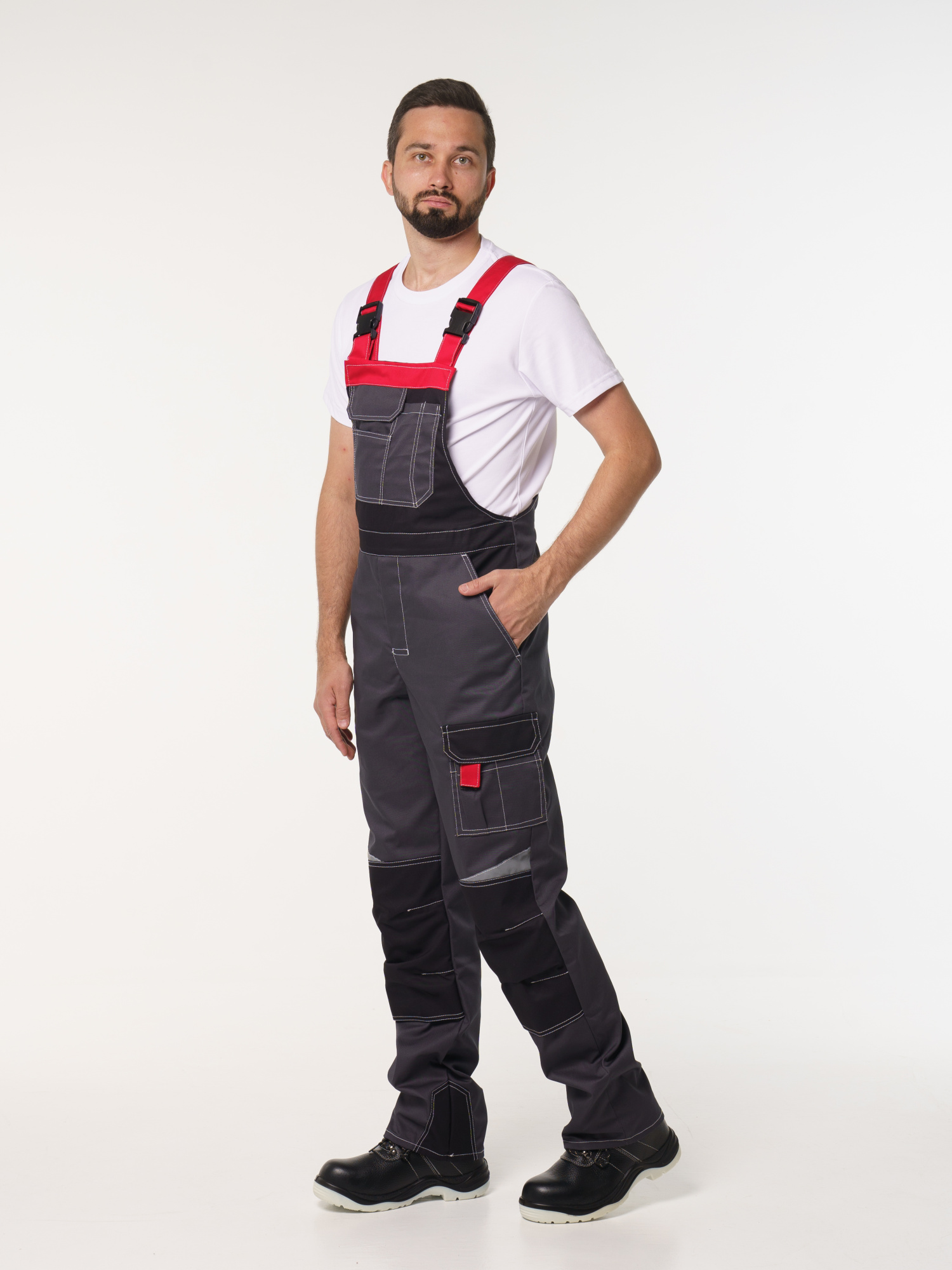 Полукомбинезон с застёжкой гульфика на молнию и застёжкой в боковом шве на пуговицы; с различными многофункциональными карманами; с объемными наколенниками; есть СОП фигурной формы .