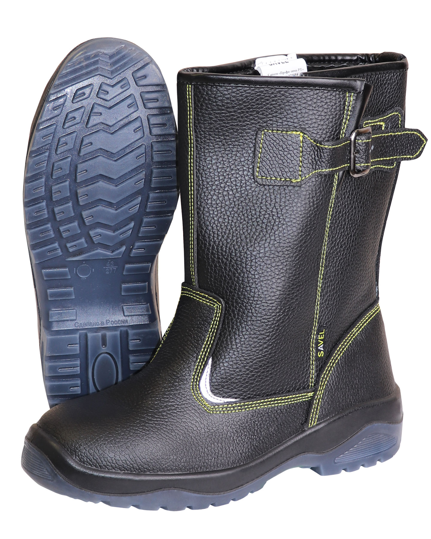 В качестве утеплителя в сапогах серии "SAVEL-Профи" использован искусственный мех. Верх сапога имеет контрастные отделочно-скрепляющие строчки жёлтого цвета.